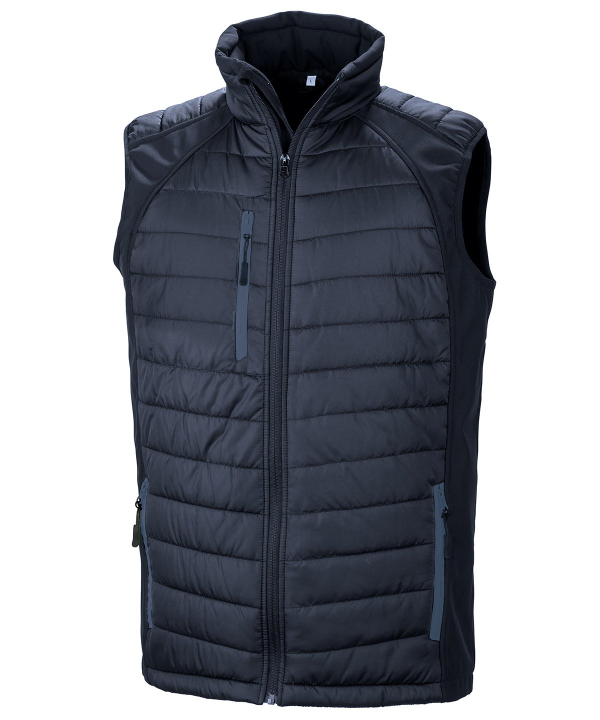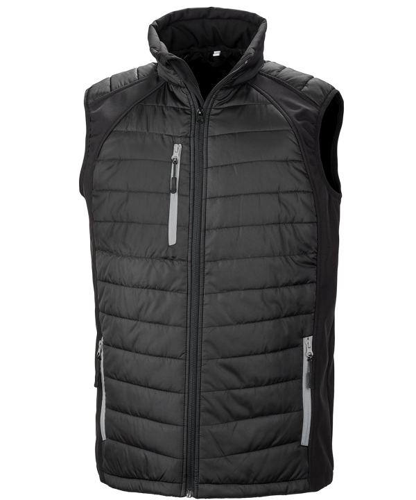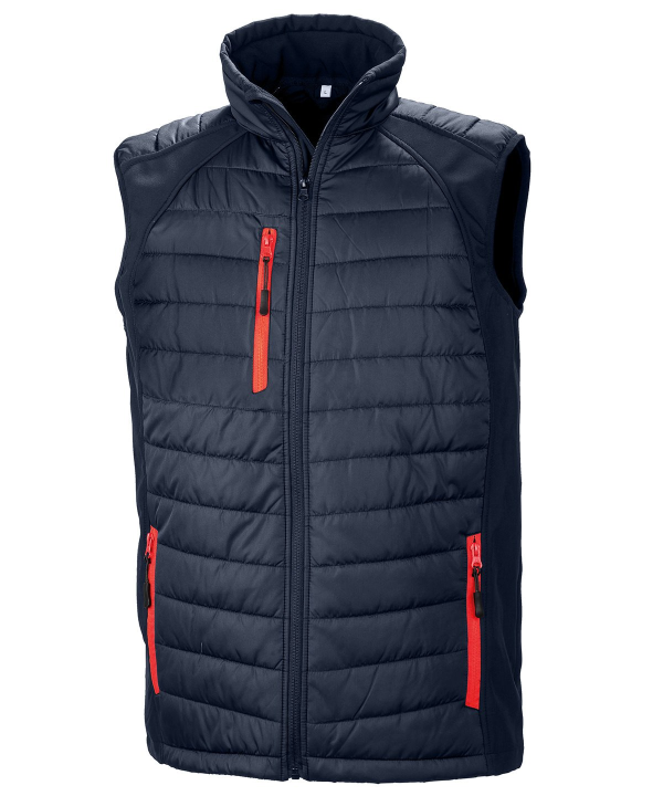 Introducing High Peak Workwears Embroidered Result Compass Padded Gilet Pack. The Result Compass Padded Gilet as a colour trim, casual combination of padding plus softshell, ideal for extra body warmth. It is showerproof, breathable, and windproof. Is ideal to create the perfect workwear uniform due to easy rebranding as well as the availability of a wider size and colour range, to suit a work team of all sizes. Ideal to customise with your company logo.