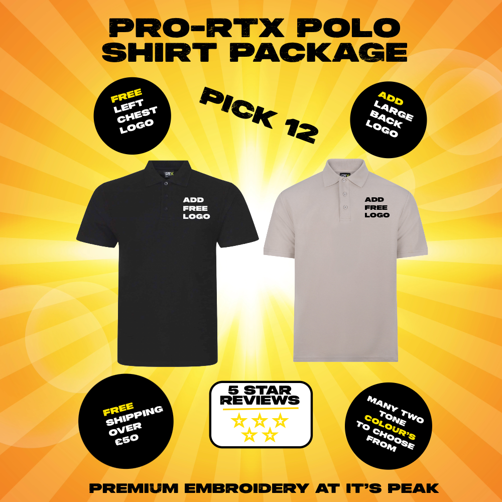 Printer Prime Bundle Transform your apparel collection with our exclusive Printer Prime Bundle, designed for versatility, comfort, and style. This all-inclusive package features essential pieces that cater to every occasion, ensuring you’re ready for anything life throws your way. Bundle Includes: – 3x Waterproof Shell Jackets: Stay dry and stylish with our lightweight, waterproof shell jackets. Perfect for unpredictable weather, these jackets are designed with breathable fabric and adjustable features, making them ideal for outdoor activities or daily wear. – 6x Polo Shirts or T-Shirts: Choose from our comfortable polo shirts or classic t-shirts, both crafted from premium, breathable fabric. Ideal for casual outings, work environments, or as a base layer, these shirts are perfect for custom printing, letting you showcase your brand or personal style. – 6x Hoodies or Sweatshirts: Embrace warmth and coziness with our soft hoodies or sweatshirts. Perfect for layering during cooler months or for lounging at home, these stylish pieces add comfort and versatility to your wardrobe. Key Features: – Comprehensive bundle for all-season wear – High-quality, durable materials for long-lasting comfort – Versatile styles suitable for various activities – Perfect for custom printing and branding – Easy care with machine washability Upgrade your wardrobe and ensure you’re prepared for any occasion with the Printer Prime Bundle—where comfort meets style! Tax included. Shipping calculated at checkout. Free shipping on orders over £50